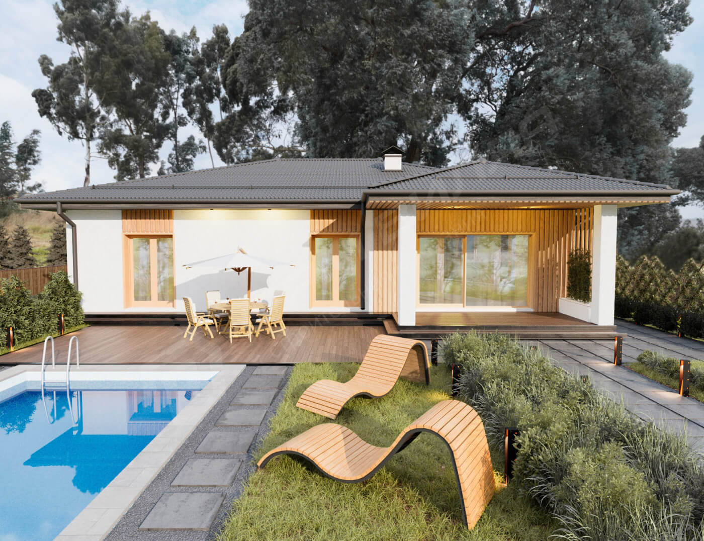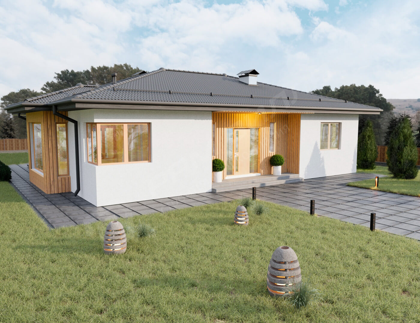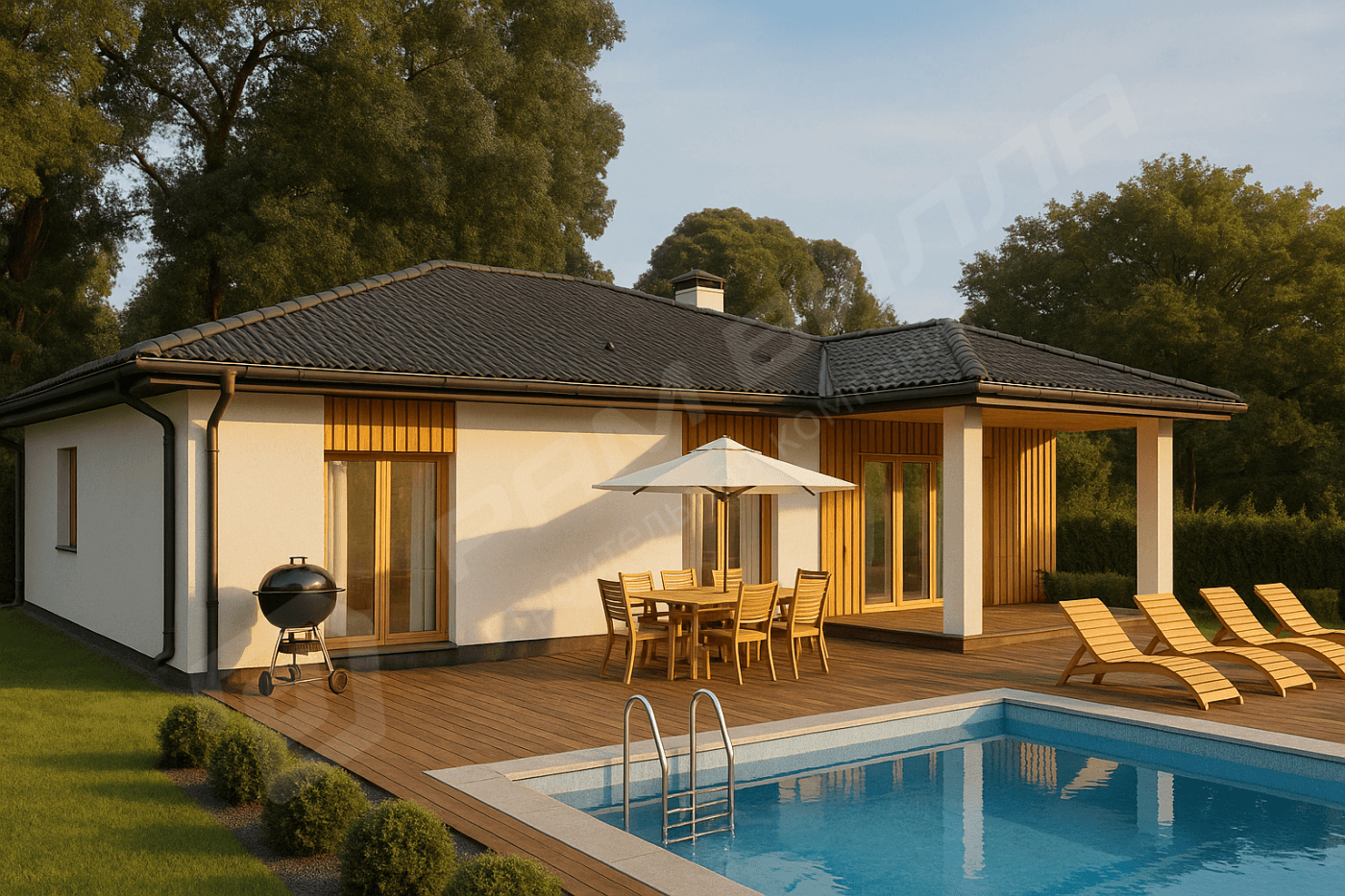 Мы - компания полного цикла. Мы берем проект от идеи, до полного воплощения на участке. За нами не приходится доделывать работу. Например крышу мы заканчиваем полностью (подшиваем софитами, устанавливаем снегозадержатели, водосточную систему).