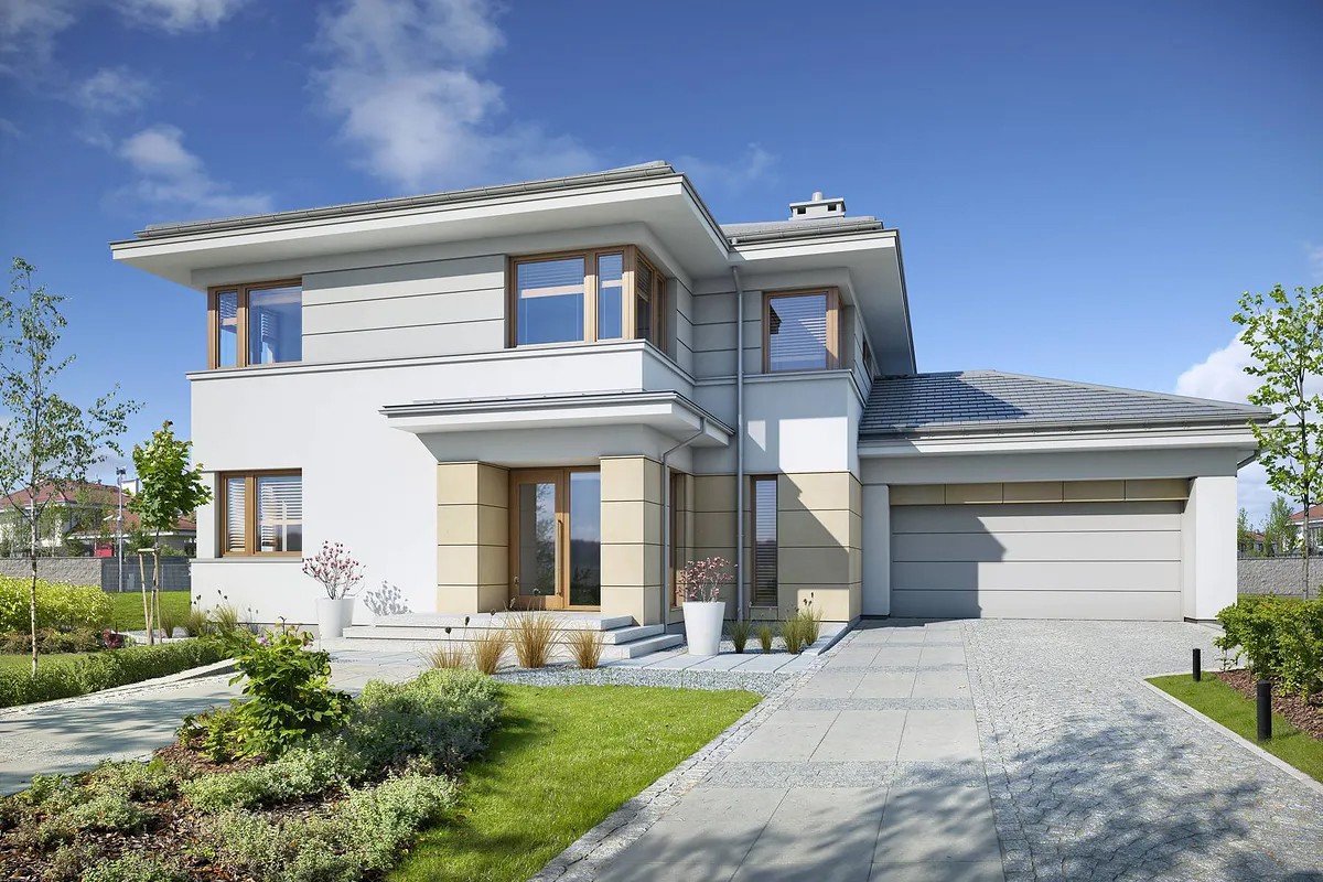 Двухэтажный дом из газобетона 17 на 17 с гаражом значительно сократит расходы на строительство за счет минимизации размера фундамента и меньшей площади крыши. К тому же, дом на два этажа считается более энергоэффективным вариантом, особенно в холодное время года.