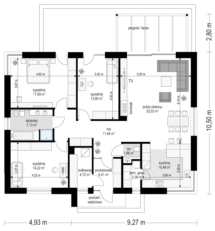 • Толщина перегородок 100мм газобетон Bonolit/ 120мм керамика Porotherm