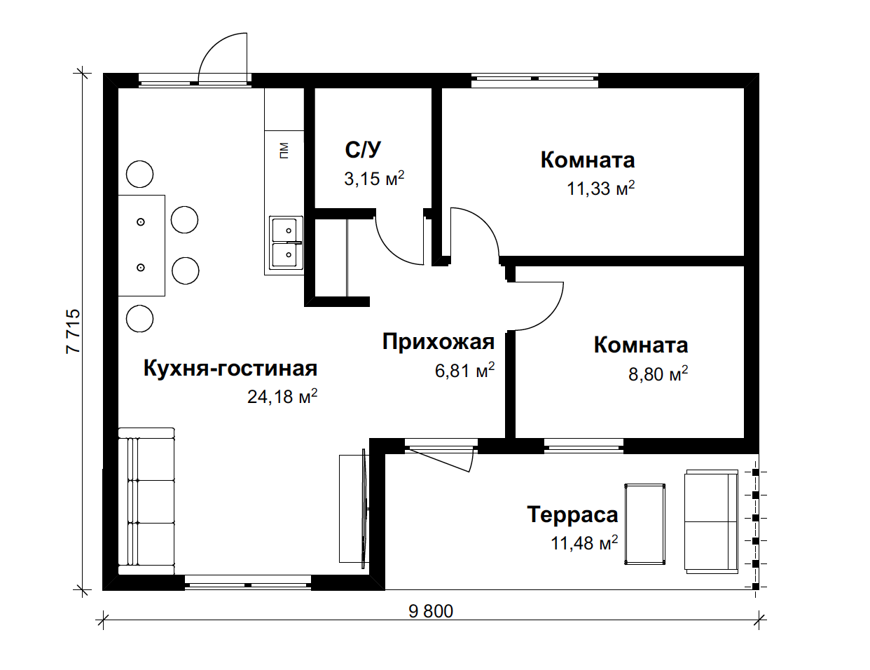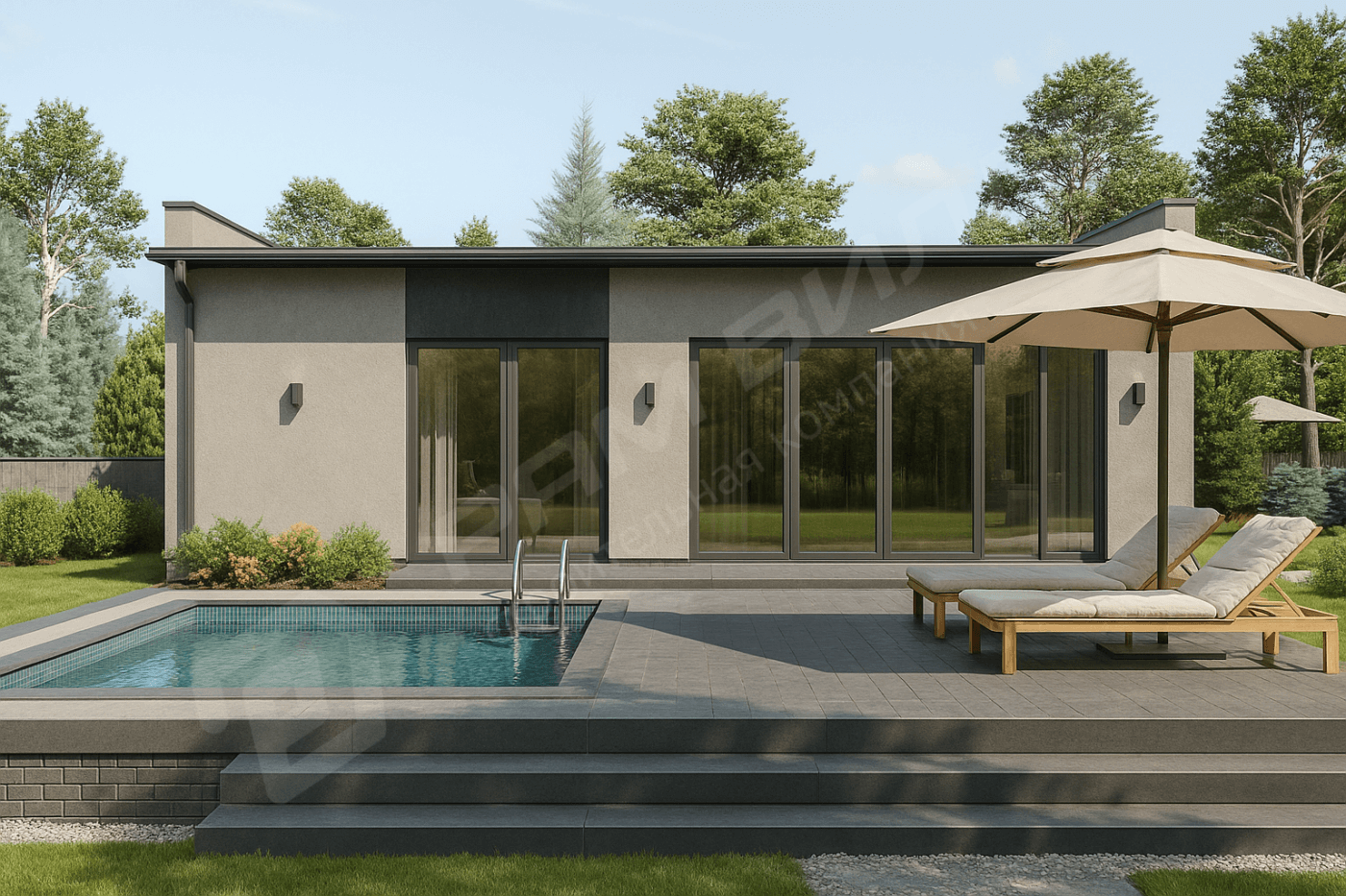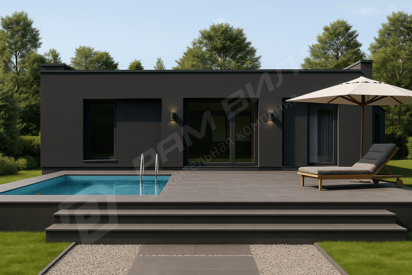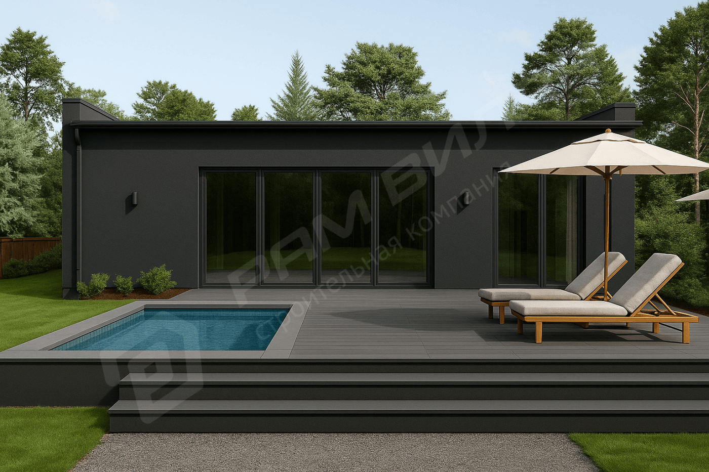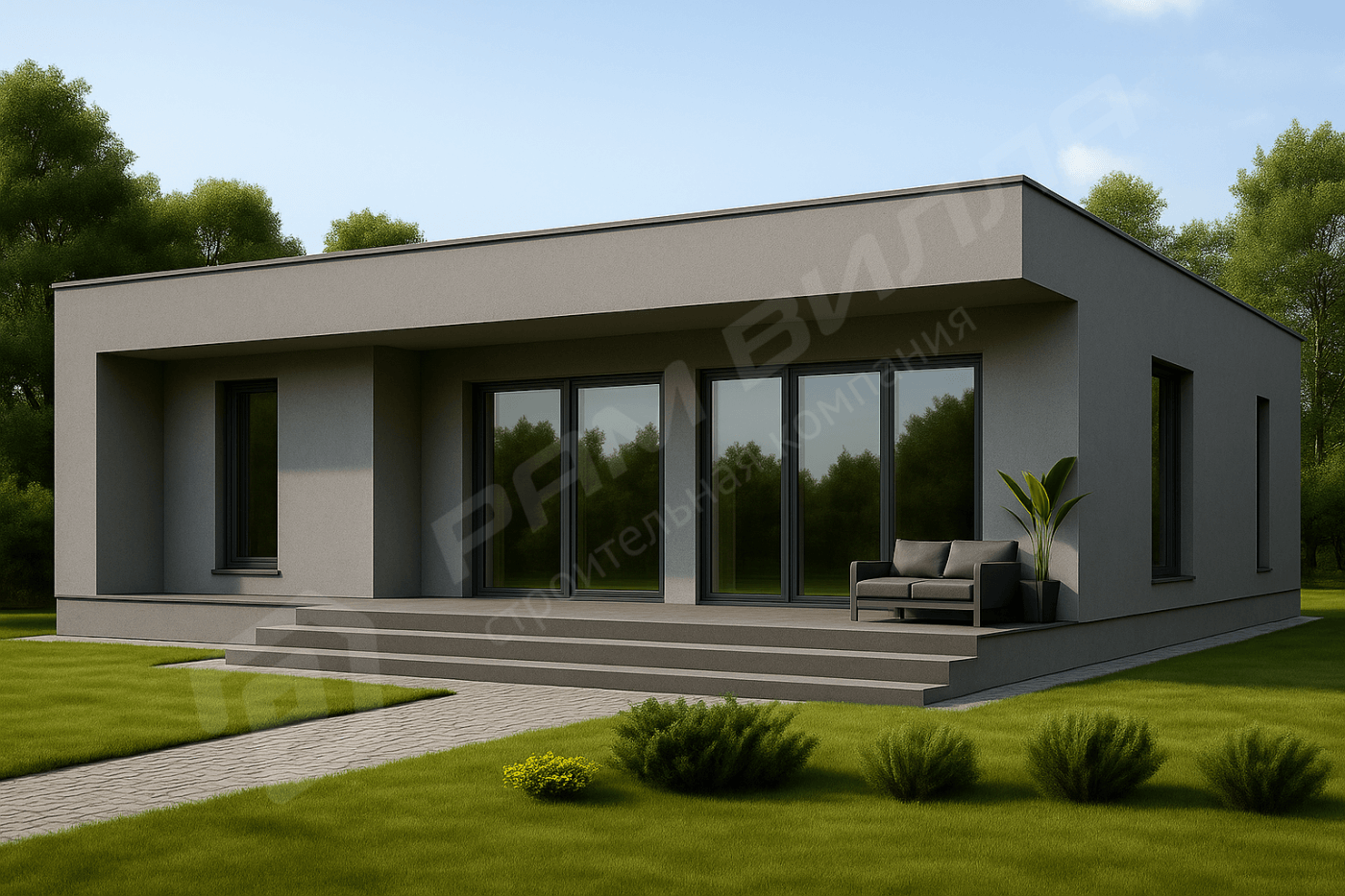 Одноэтажный дом из заводских панелей с облицовкой дом 10 на 8