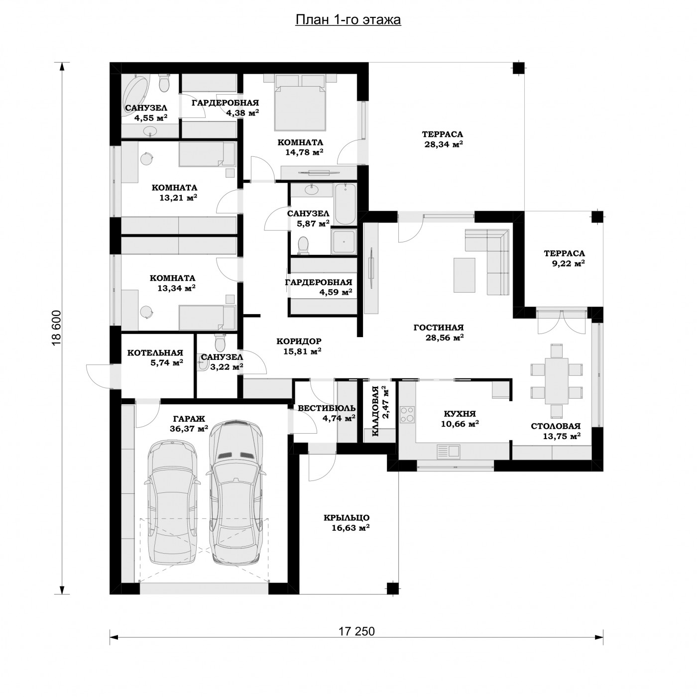 Площадь 1 этажа 236.23 м2