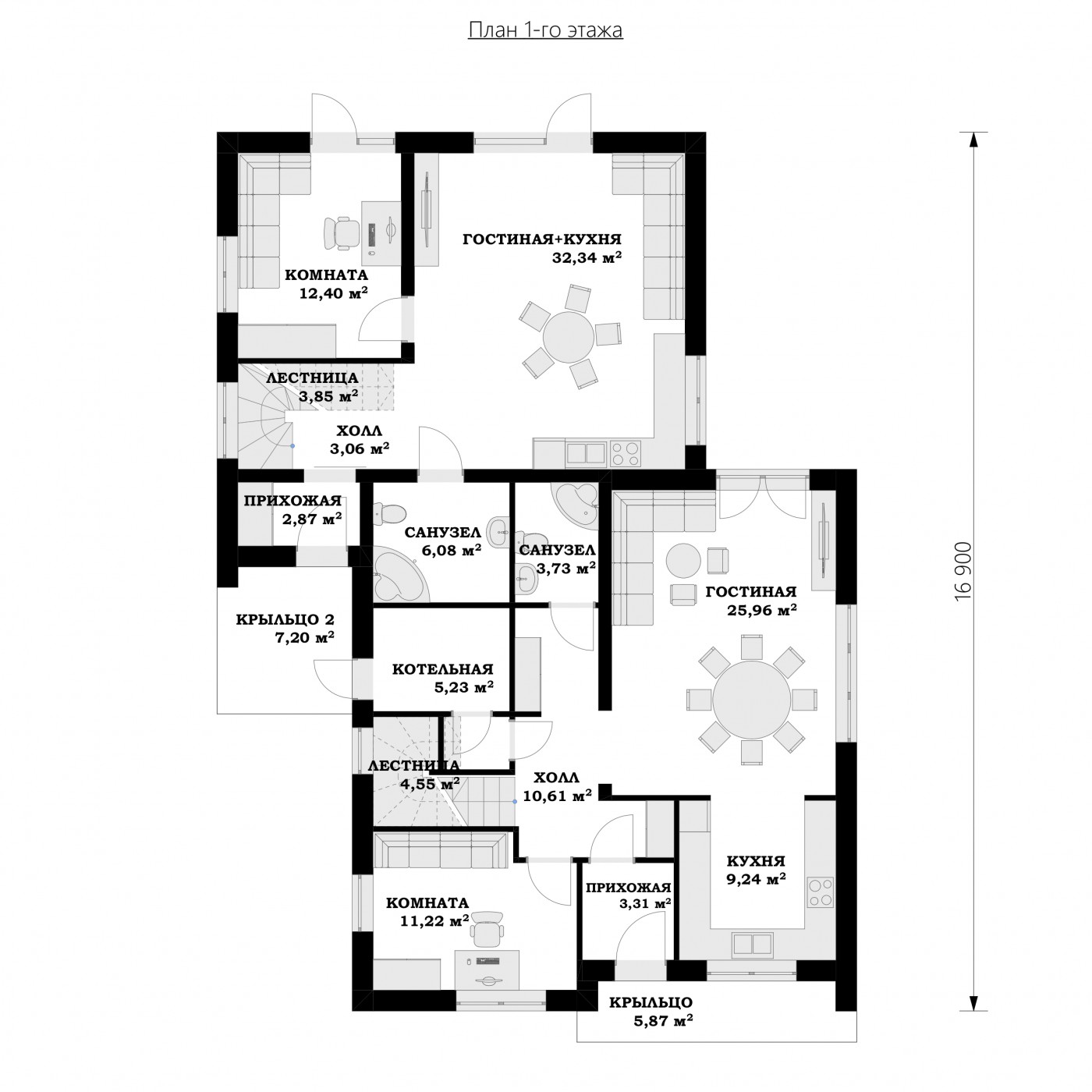 Площадь 1 этажа 148.13 м2