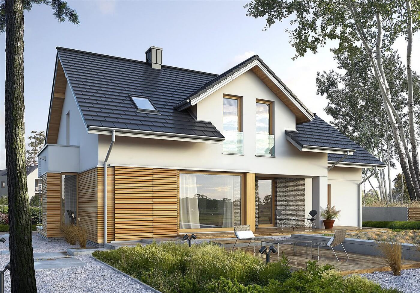 Мы - компания полного цикла. Мы берем проект от идеи, до полного воплощения на участке. За нами не приходится доделывать работу. Например крышу мы заканчиваем полностью (подшиваем софитами, устанавливаем снегозадержатели, водосточную систему).