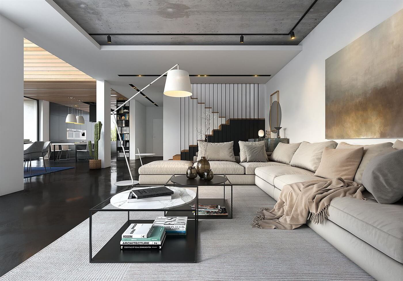 Открытого плана 2-х этажный дом с просторным гаражом, с плоской крышей, с террасой, имеющай габаритные размеры по проекту 16 на 21.