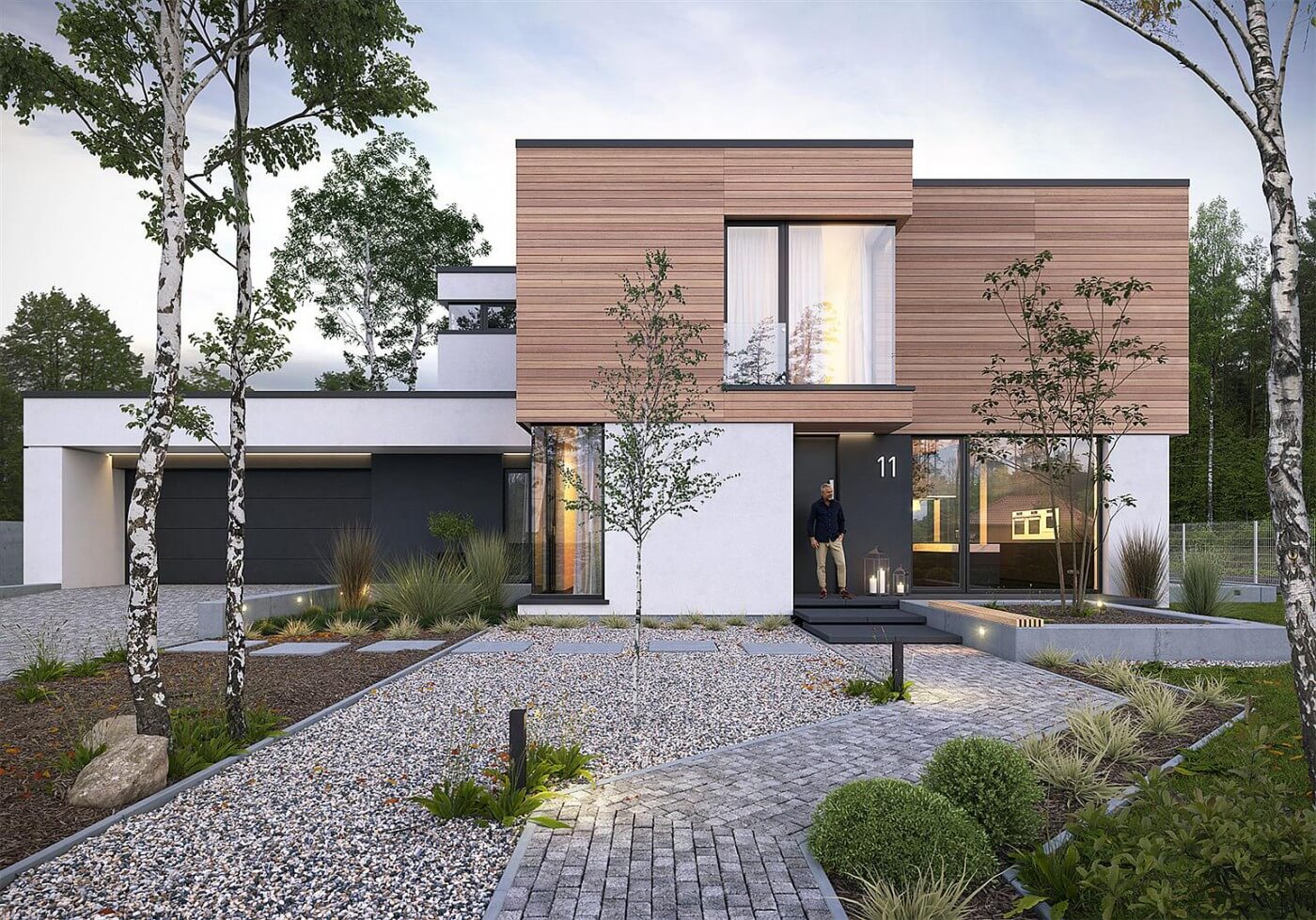 Двухэтажный дом 16 на 21 с плоской крышей и гаражом