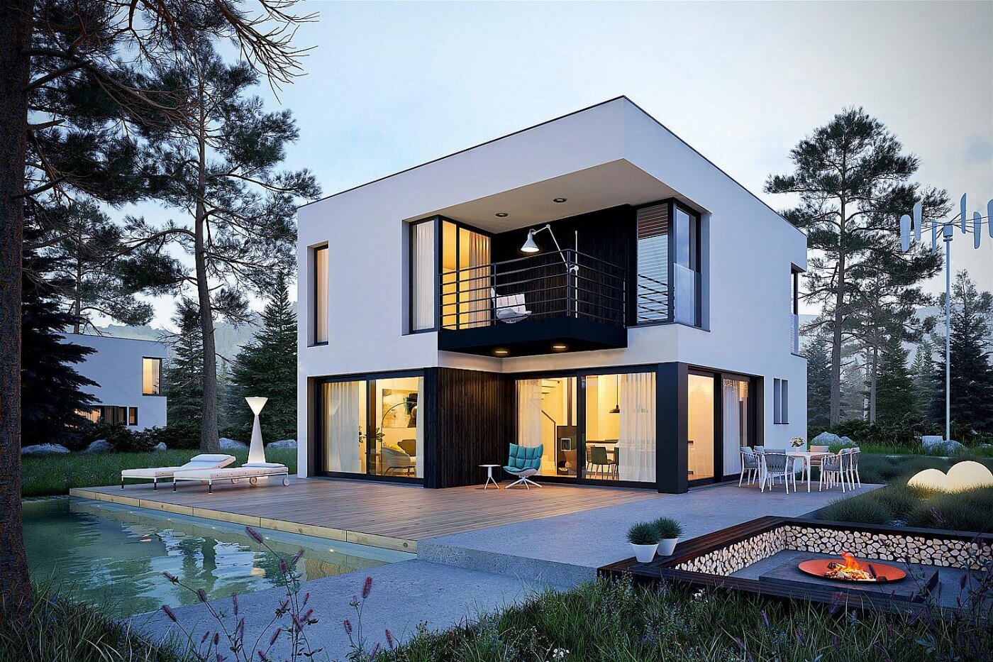 Данный проект является отличным примером стиля хай-тек. Это современный и многофункциональный дом 10 на 10 с плоской крышей. Здесь выверен каждый сантиметр, технические и дизайнерские решения создают неповторимый стиль. Многие думают, что подобные решения не популярны у нас в стране с учетом нашего климата и различных особенностей, в виде снежной зимы и многое другое. Но наши специалисты адаптировали под реалии нашей полосы проекты таким образом, что каких-либо проблем с этими особенностями не возникает. Не первый год мы строим дома подобного вида и собрали уже массу положительных отзывов.