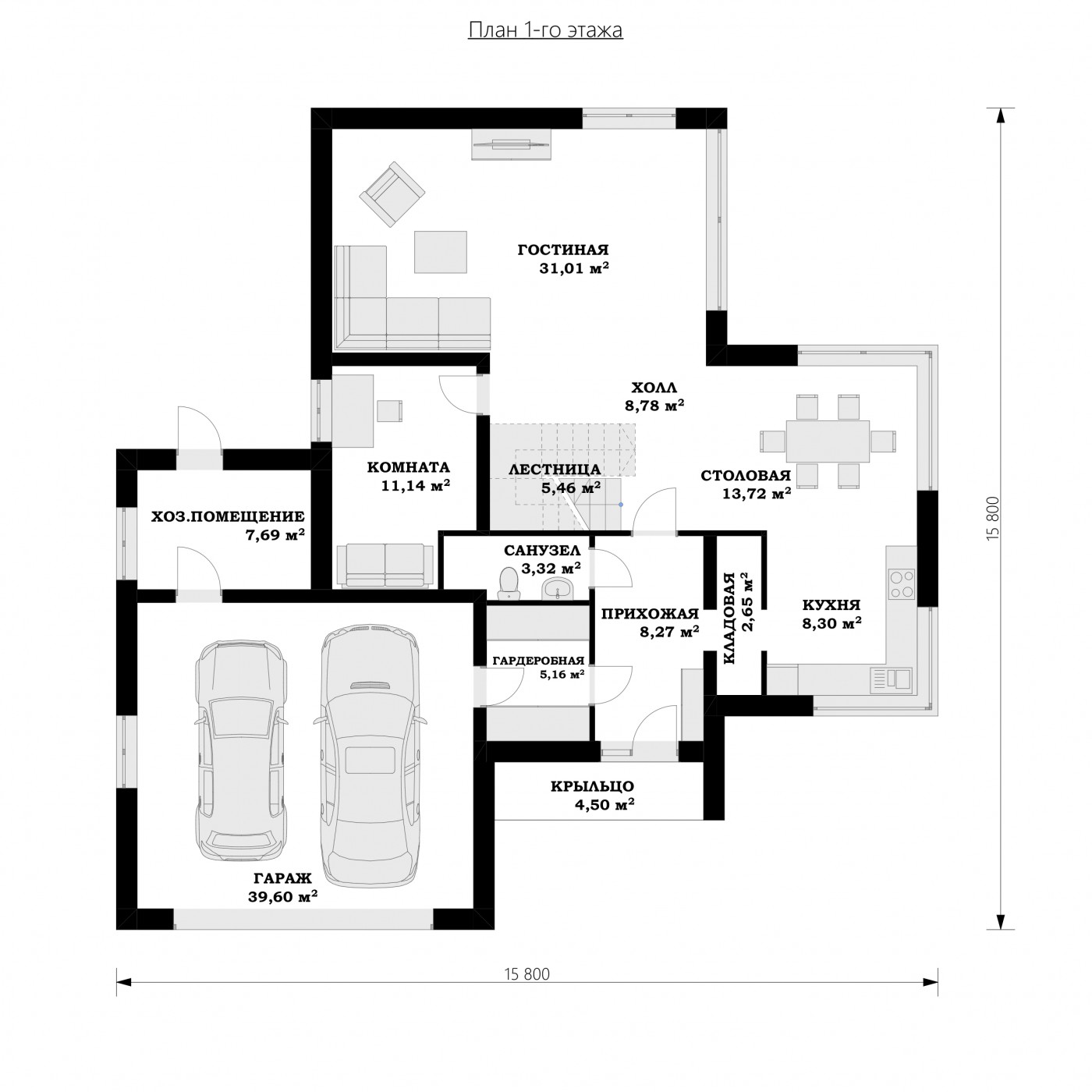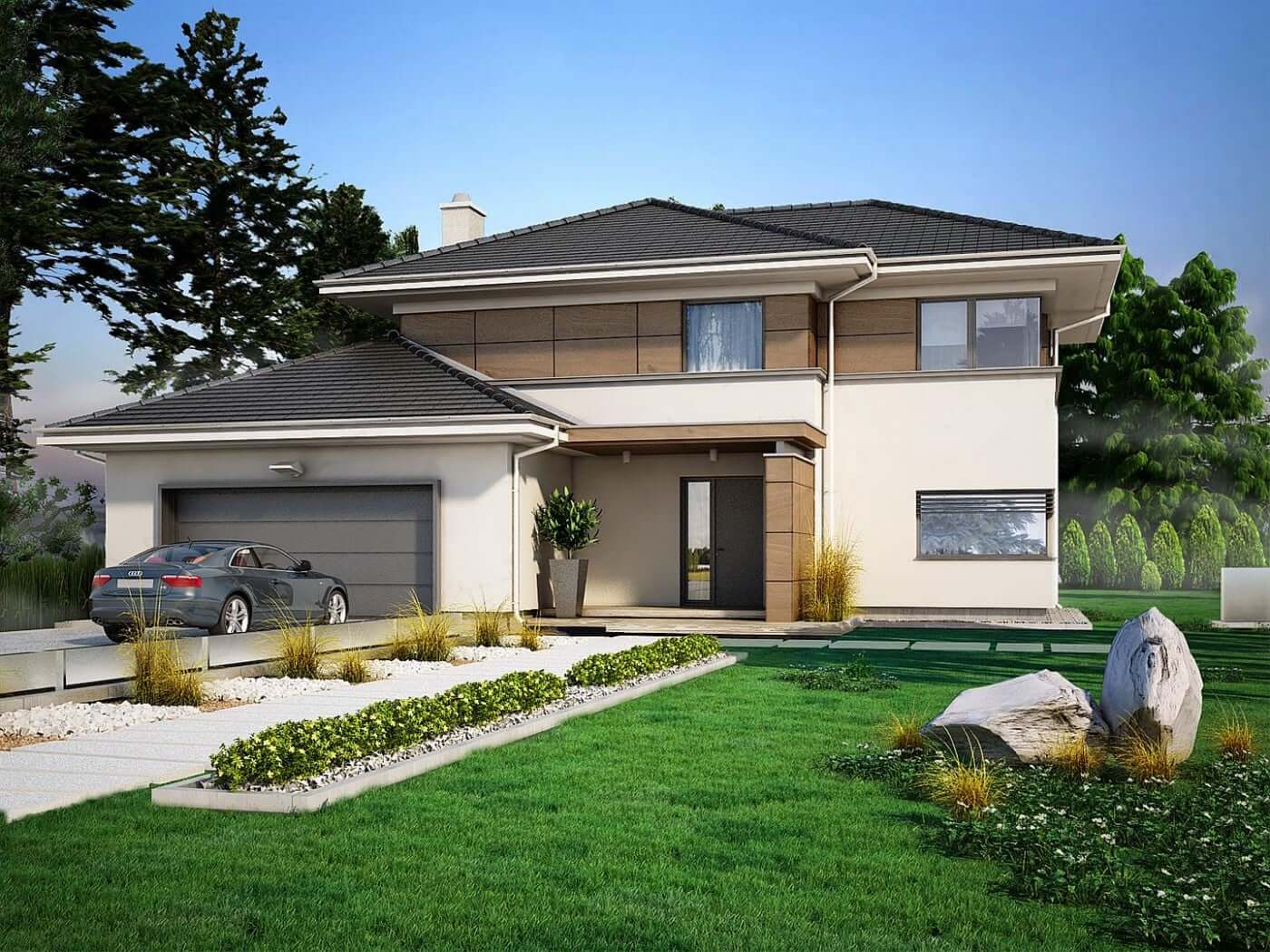 План двухэтажного дома 16 на 16 "Сиэтл" - идеальное предложение для людей со средним участком. В конструкции имеется гребень, расположенный перпендикулярно дороге, что часто указывается в плане зонирования. Дом был создан для отдельно стоящих зданий. Проект предусматривает двойной гараж на фронт. Корпус здания увенчан крышей-конвертом, что делает здание очень привлекательным. Проект "Сиэтл" представляет собой двухэтажный дом, благодаря которому размер дома не ограничен размером участка. Дизайн дома характеризуется просторной дневной зоной. Современная открытая кухня - это прежде всего функциональное решение, идеально подходящее для всех, кто хочет жить комфортно, и модно одновременно. Кроме того, просторная кладовая - полезная комната. Дневную зону также создают просторная гостиная и столовая. Кроме того, в гостиной есть камин, придающий интерьеру неповторимую атмосферу. Дизайн включает в себя одну удобную ванную комнату на первом этаже и еще две на этаже. В доме пять уютных спален, что делает его отличным выбором для семьи из 5-7 человек. Пространство также может быть использовано в качестве комнаты для гостей или учебы. Лучшую организацию пространства обеспечивает гардероб, предоставленный дома. Предоставленное в проекте подсобное помещение, безусловно, поможет нам поддерживать порядок. Общие барбекю и семейные трапезы будут дополнены террасой, включенной в проект. Здание было спроектировано по кирпичной технологии.