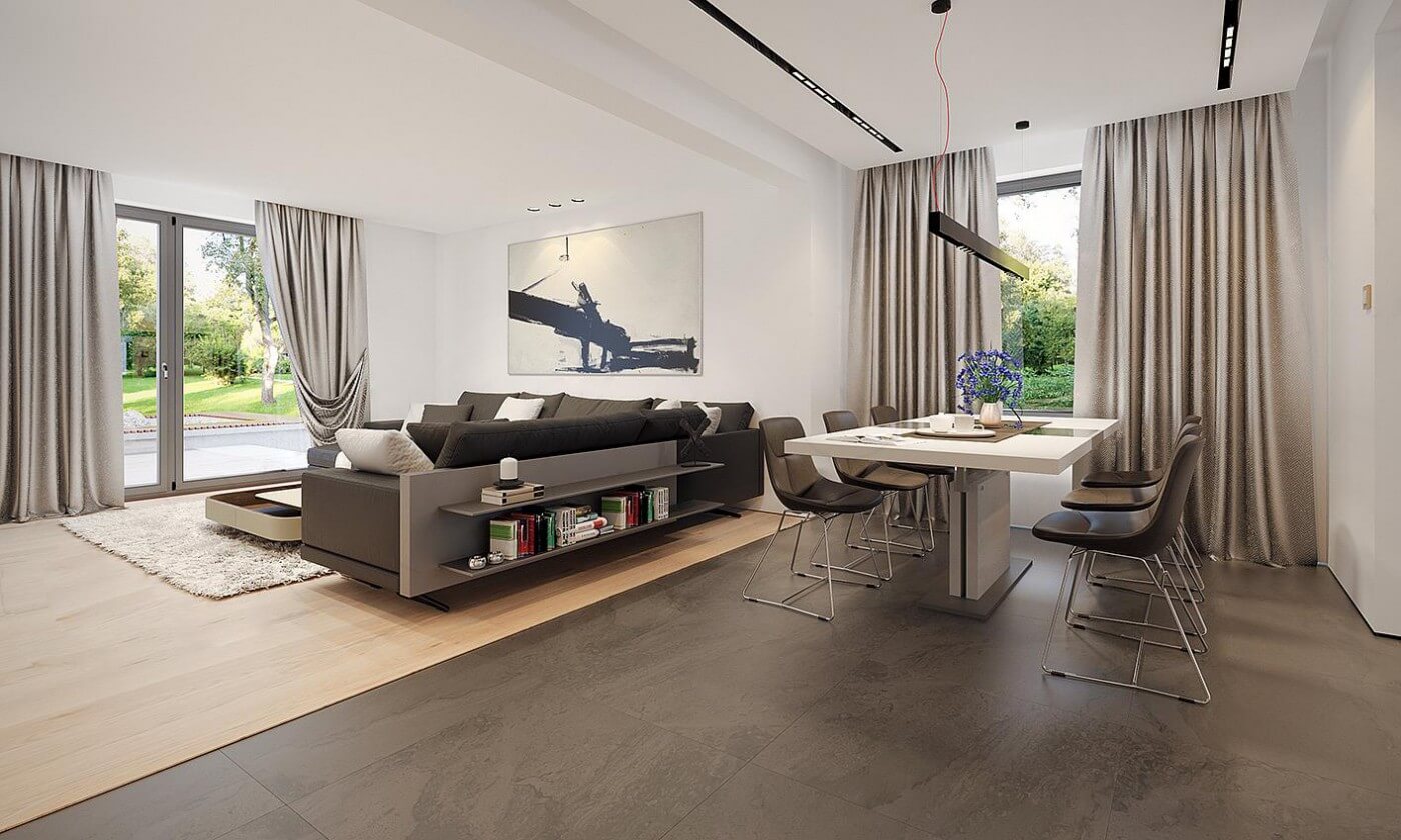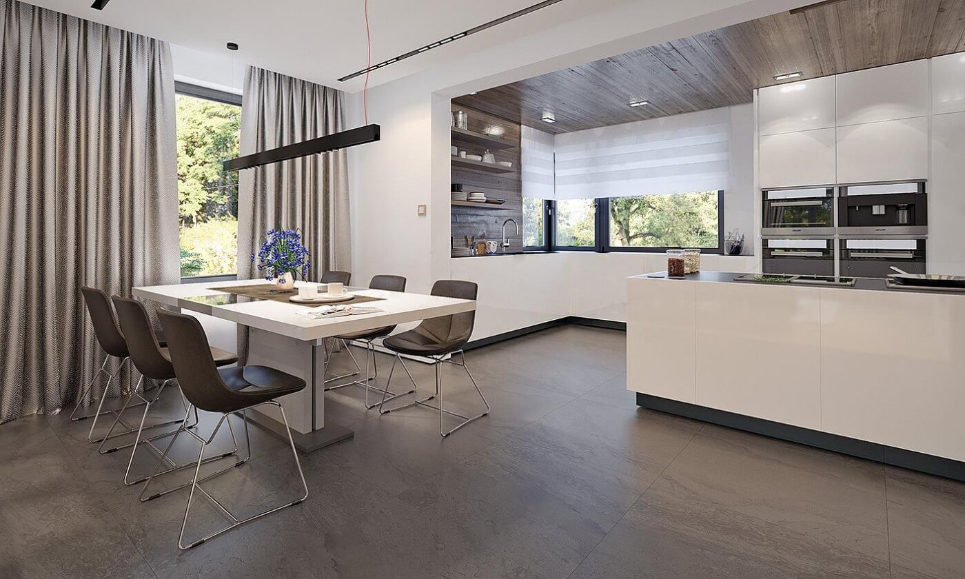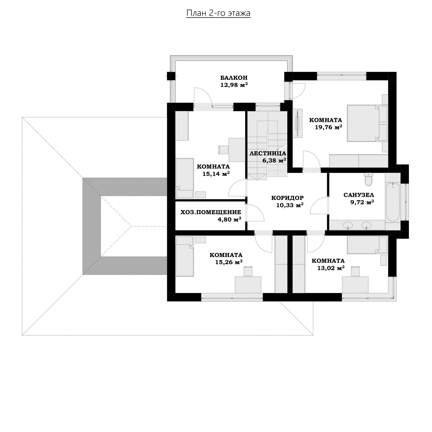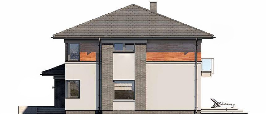 "Манчестер"- проект представительного двухэтажного дома для семьи из 5 человек. Это типичная городская резиденция с современным обликом и оптимальной полезной площадью. Он имеет богатую функциональную программу, расположенную на двух этажах, что обеспечит комфорт даже для требовательных инвесторов. Первый этаж был спроектирован как открытое жилое пространство, состоящее из объединенной гостиной, столовой и кухни. Здесь также есть дополнительная комната, которая может быть использована как кабинет или дополнительная спальня. На первом этаже также есть большая котельная, для каждого вида топлива и гараж на две машины. На первом этаже расположены 4 спальни, ванная комната и прачечная. Проект дома 18 на 12 впечатляет утонченной, неподвластной времени классической формой, воплощенной в современном элегантном образе.