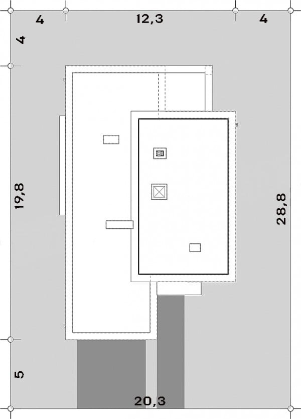 Дизайн дома "Даллас" является идеальным предложением для людей, которые имеют средне широкий участок. Дом с плоской крышей 19 на 12 имеет простой блок, поэтому его реализация не потребит слишком много финансовых ресурсов. Дом был спроектирован для отдельно стоящих зданий. Автор проекта включил двойной гараж форвардов. Конструкция дома покрыта плоской крышей, благодаря чему пол не имеет наклонов и поэтому полностью функционален. Проект "Даллас" - это одноэтажный дом, который делает общение между комнатами очень удобным. Автор проекта предвидел в нем интересную дневную зону. Открытая кухня - идеальное место для семейных и дружеских встреч. На кухне также есть стол, благодаря которому утренние встречи с семьей станут важной частью дня для каждого члена семьи. Дневная зона создается гостиной и столовой, что наверняка удовлетворит сторонников функциональных решений. Интересным элементом, безусловно, является камин, расположенный в гостиной, который придаст интерьеру неповторимую атмосферу. Спальная зона состоит из трех комнат, что является отличным вариантом для небольшой семьи. Пространство также может быть использовано в качестве комнаты для гостей или учебы. Для людей, которые ценят хорошую организацию, важной комнатой является гардероб, представленный в дизайне. Комфортное использование дома также зависит от подсобного помещения, включенного в него. Общие барбекю и семейные трапезы будут дополнены террасой, включенной в проект. Технология кирпича, рекомендованная архитектором, обеспечивает прочность и прочность конструкции. Его внешний вид усиливает характеристики современного стиля, который идеально подходит для людей, которые ценят новейшие решения.